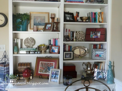 Of course, being the redecorranging fanatic that I am, it looks different today than it does in this pic from a month ago (I know, I know…).  But I still want all my treasures to pop and am thinking color on the inside is the way to achieve this.