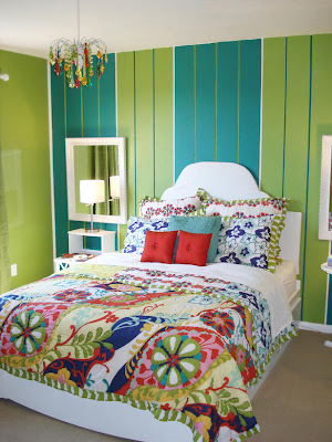 WOW! Are you awake yet? Love the pop of tomato red with the turquoise and apple green.