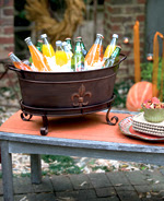 She’s a beauty! I love that she comes with a tray and a stand to protect your surfaces and elevate her just a bit on your buffet. And the fleur de lis motif adds a touch of style. She’s not just for serving beverages. Keep her on your hearth for kindling and firewood. Put a collection of fall plants in her, such as an autumn fern, a good size croton, and some trailing ivy. Or fill her with pumpkins of all sizes for instant fall decoration on your front porch. Only $109.96 for this gem and you can order her directly on my website now.