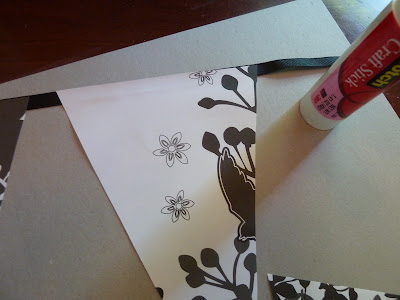Sorry for the unedited photos! I picked up this patterned scrapbook paper on clearance at Target. Less than $3 for a pack of 8 sheets, all black and white and shades of gray. These will become a “Congratulations” pennant banner.