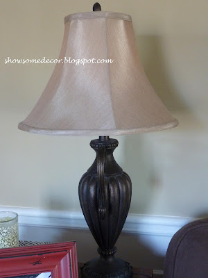 This is one of my family room lamps and though I love the base, the shade just did nothing for me– it simply seemed to blend into the wall, in fact. So in my quest to lighten and brighten earlier this year, this popped up on my list of projects. I originally intended to buy a simple drum shade and cover it with a fabric with flair.