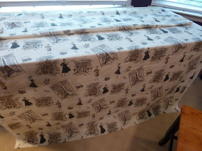 I started by cutting my 2 corner panels.  I wanted there to be plenty of overlap, so I cut them about 14 inches wide, knowing I would be hemming the edges.