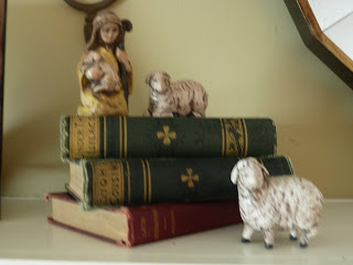 They are leather bound and from the 1900’s. Love the marbelized covers. You might remember seeing these that belonged to my grandmother on my mantle: