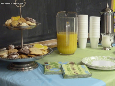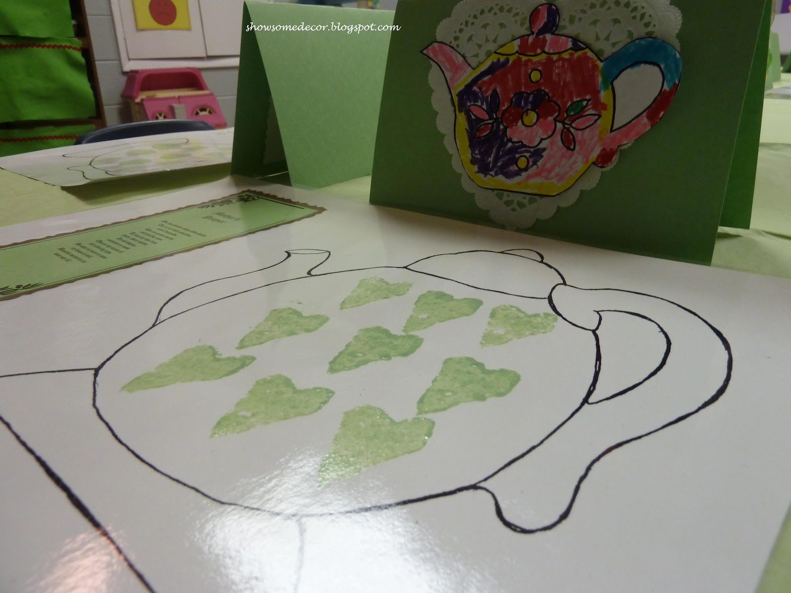 Every May, we host our moms for a Mom’s Tea. It’s our chance to honor the moms that gift us their precious little ones and lots of their time throughout the year to make special events special. The kids work hard on portraits of mom, placemats, cards, and manners (!) to make the morning memorable. We pull together scrapbooks of art samples from each month… amazing to see their progress from August to May! The moms enjoy visiting with each other, seeing their child’s art and projects, and a little pampering in the form of coffee, juice, and cookies made by the teachers. I try hard to make it beautiful and special for them.