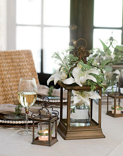 But in all fairness, you can find lovely and affordable lanterns at Pottery Barn or my beloved Ballard Designs. I’ve even spied some oversized but still inexpensive ones at Pier One. In other words, keep your eyes open– they abound in stores now! The beauty of lanterns is that they can be enjoyed year-round. Bring them inside in the winter time to add pizazz to a hall table or bookcase or even the powder room. Now THAT’s getting your money’s worth!