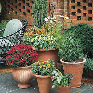 I have Blue Spruce trees (very small) in my ceramic containers. I heard that they should be wrapped with burlap to protect them in the winter. That might be a nice fall look. What do you think?