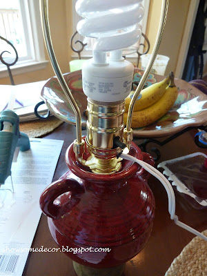 Hey Lara- there's no email address attached to your blogger profile, so I'll answer your question here. The cord does not actually go through the urn. It comes out from the electrical fixture itself. If you want to drill a hole so the cord comes out of the bottom of the jar, i think you could use a drill bit designed for ceramics. You might take the jar to HOme Depot or Lowes and show them. They may even drill it for you. 🙂 Good luck! Send me a pic of your lamp when you're through and I'll share it here if you'd like! he*********@*****st.net.