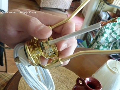 Here’s where I had to get a little crafty! The lamp kit did not come with an insert large enough for the opening of the urn. So I simply used hot glue to secure the harp base and lamp kit apparatus to the urn.