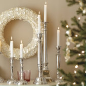 Add some green– plants! Pick up a couple of inexpensive low-maintenance plants like a pothos or English ivy. Pull out your soup tureen or a favorite serving bowl for an interesting container. Even your silver champagne bucket makes a striking home for some fresh greenery. If all else fails, invest in a topiary or two or some silk ivy from your local craft store.