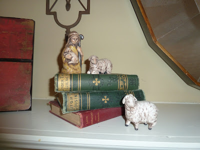 This little vignette keeps sticking around because I love it so!  The antique books belonged to my grandmother (I actually read these when I used to visit her as a child!) and the shepherd and sheep are part of my (now retired) Southern Living at HOME nativity.  They’re so sweet they stay out year round here.  Always a reminder of who my Shepherd is. 🙂